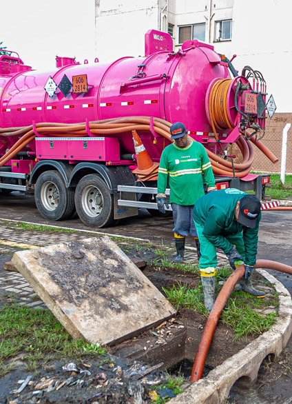 Uso de jato de água em ultra-alta pressão para remover resíduos que entopem bocas e lobo. Foi intensificada a utilização deste recurso objetivando evitar acúmulo de águas e alagamentos.