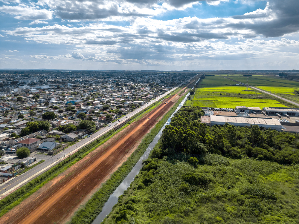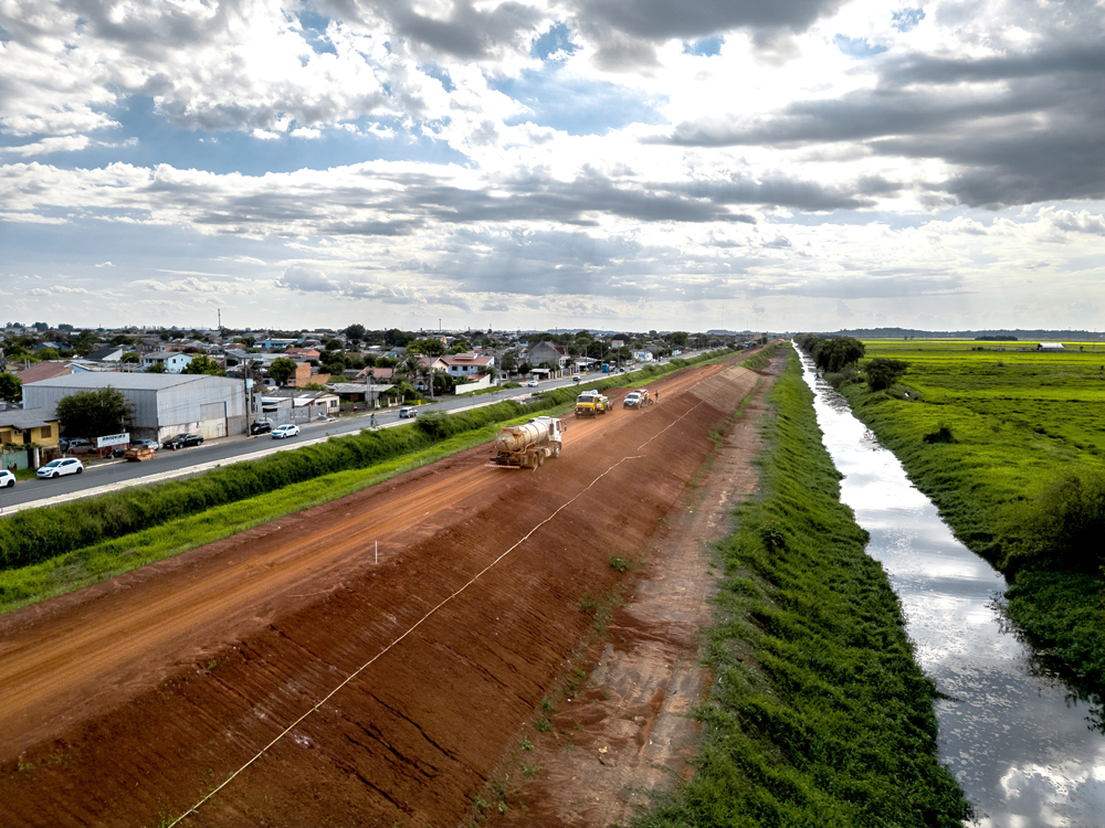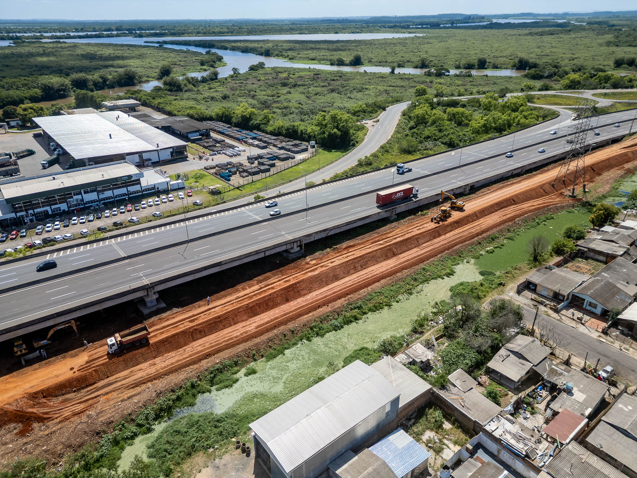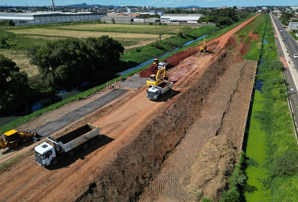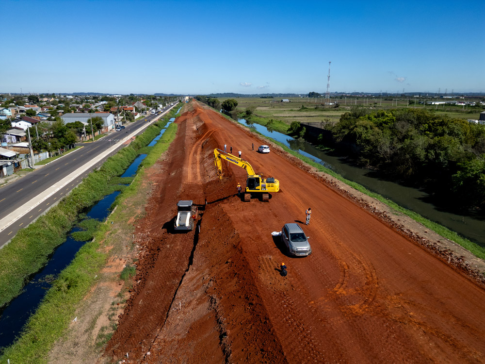 Este dique será elevado e em seu topo será construída a Rua Gravataí, que irá colaborar para o trânsito de veículos das empresas locais.