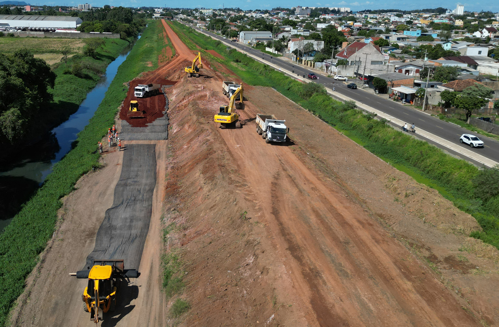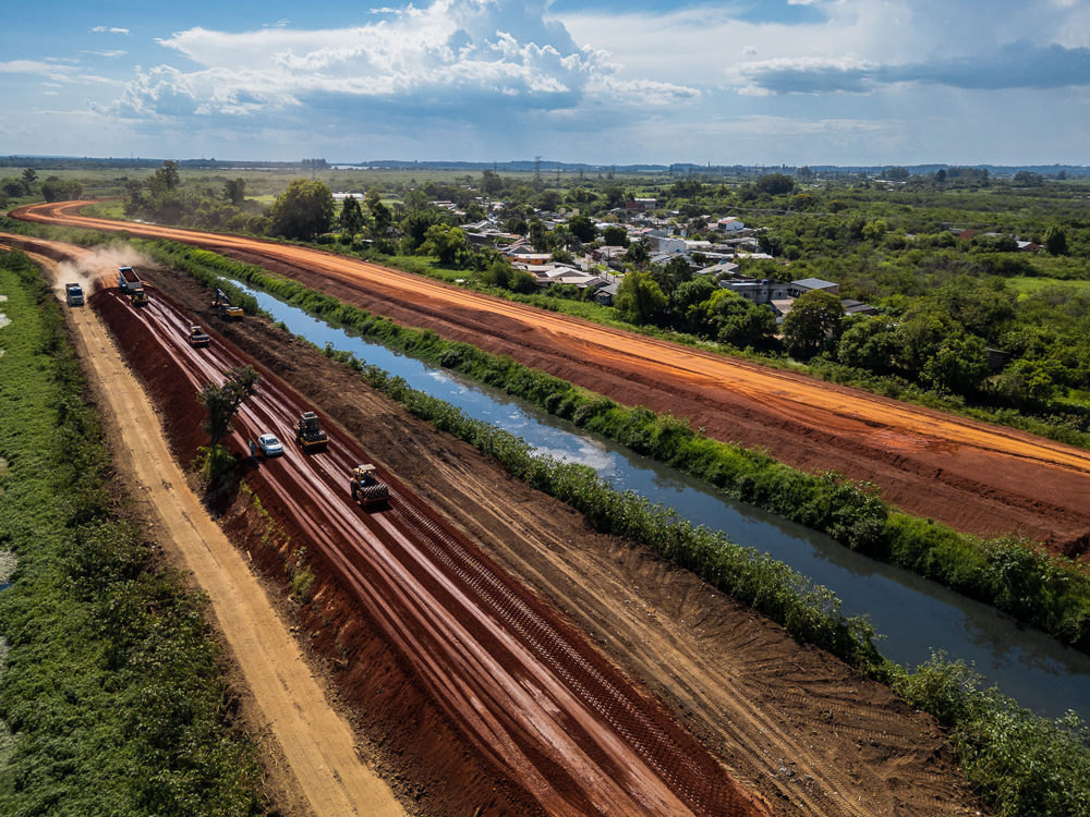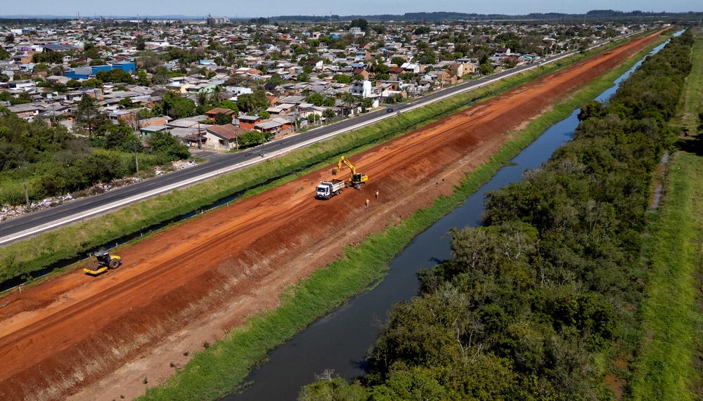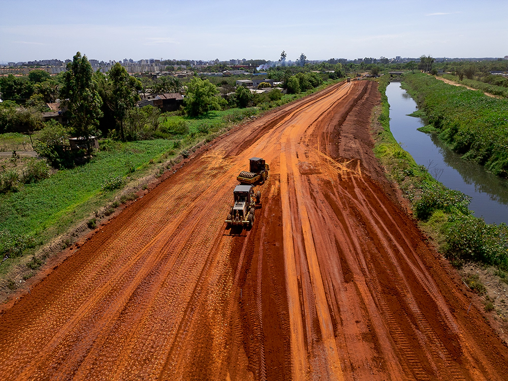 A Prefeitura de Canoas concentra esforços em obras estruturais para garantir a proteção da cidade contra novas enchentes. Estão em andamento os serviços de recuperação dos diques e a construção do muro de contenção no bairro Rio Branco, medida essencial para reforçar a segurança da população.